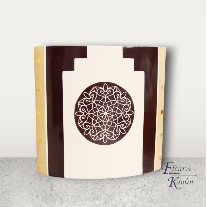 Vase à deux cotés : caramel, sepia, chocolat et or brillant.