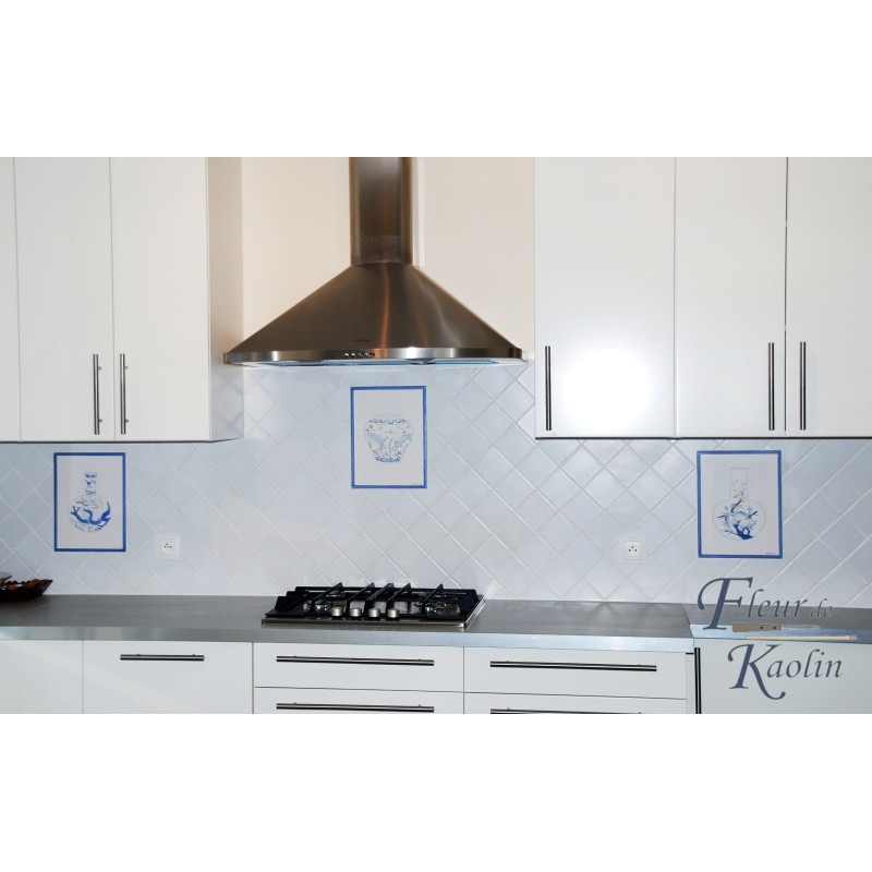 Décor peint à la main sur des carreaux de crédence sur le thème des potiches chinoises.