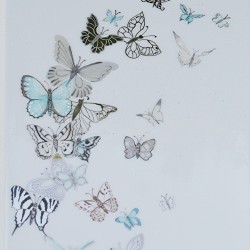 Les fleur de néuphars sont peintes en technique traditionnelle, les feuilles en lustre métallisé pour le coté nacré et entouré d'un liseré en relief blanc. Le fond est peint en technique américaine pour garder le coté pastel. le bord est peint en platine puis des dessins sont dessinés en relief.