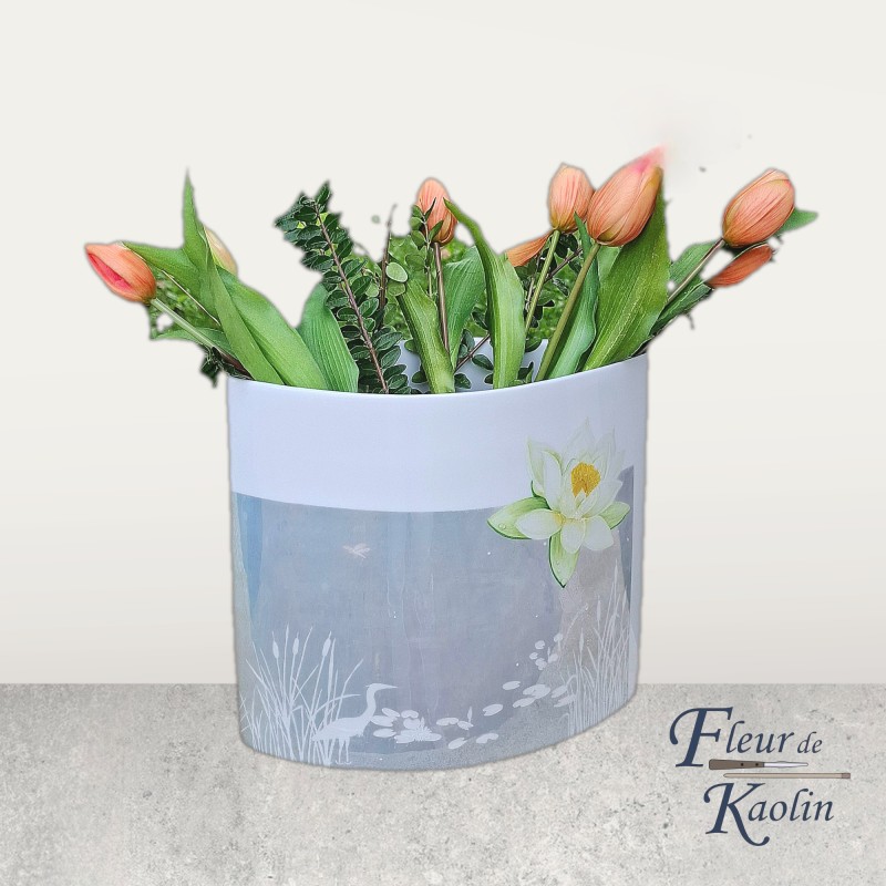 Nénuphars peints à la main sur un vase en porcelaine Carpenet.