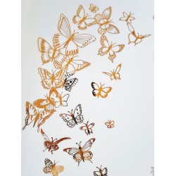 Les papillons en or apportent une touche précieuse et lumineuse, tandis que les feuilles sont sublimées par un lustre gris, offrant un reflet nacré délicat et raffiné.