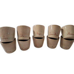 Prénom peint à la main sur chaque tasse.