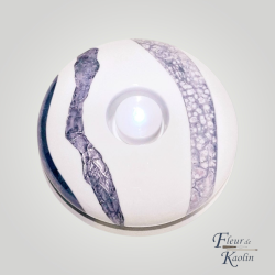 Ce bougeoir en porcelaine est décoré en platine, en bronze, avec des lustres de couleurs. La lumière de la flamme révèle alors toute la richesse du décor.