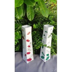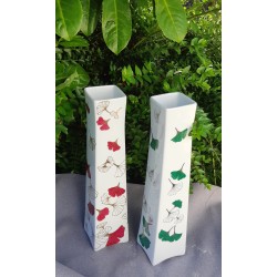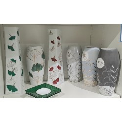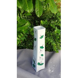 Vase en porcelaine d'une grande élégance, où les feuilles de ginkgo sont peintes à la main avec des détails en argent. Le contraste entre les feuilles vertes et l’argent sur une base de porcelaine blanche rappelle un équilibre délicat entre modernité et tradition. Le vase Chloé semble être l'incarnation parfaite de ce raffinement, avec des lignes fines et un design sophistiqué. Les feuilles de ginkgo donnent un sentiment de légèreté et de grâce.