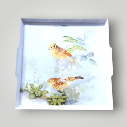 Ce plateau carré Haviland est entièrement peint à la main, à la manière d’un tableau, un travail minutieux qui nécessite plusieurs semaines de réalisation.