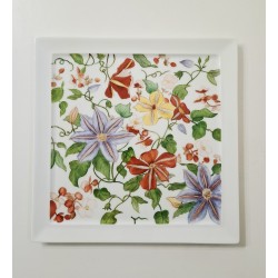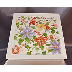 Ce plat carré en porcelaine est décoré d’une multitude de fleurs aux teintes variées, créant un décor délicat et raffiné.
