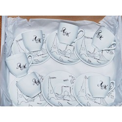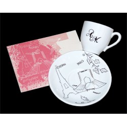 Décor peint à la main sur un service à café, ... à partir du carton d'invitation … deux univers Paris / Tehéran.