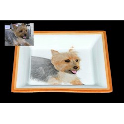Offrez un cadeau personnalisé à forte valeur émotionnelle grâce à la réalisation d’un vide-poche en porcelaine décoré à partir de photographies de votre chien.