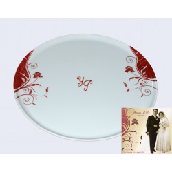Le décor est entièrement peint à la main. Les prénoms des mariés et la date de l’événement de vos noces d’or, délicatement inscrits au dos du plat, transforment cette création en un souvenir précieux et intemporel.