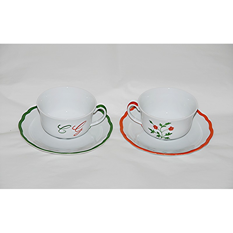 Décor peint à la main sur des tasses, à partir du carton d'invitation.