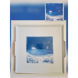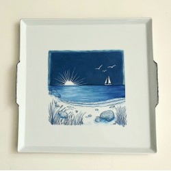 Décor peint à la main sur un plateau en porcelaine, ... à partir du carton d'invitation.