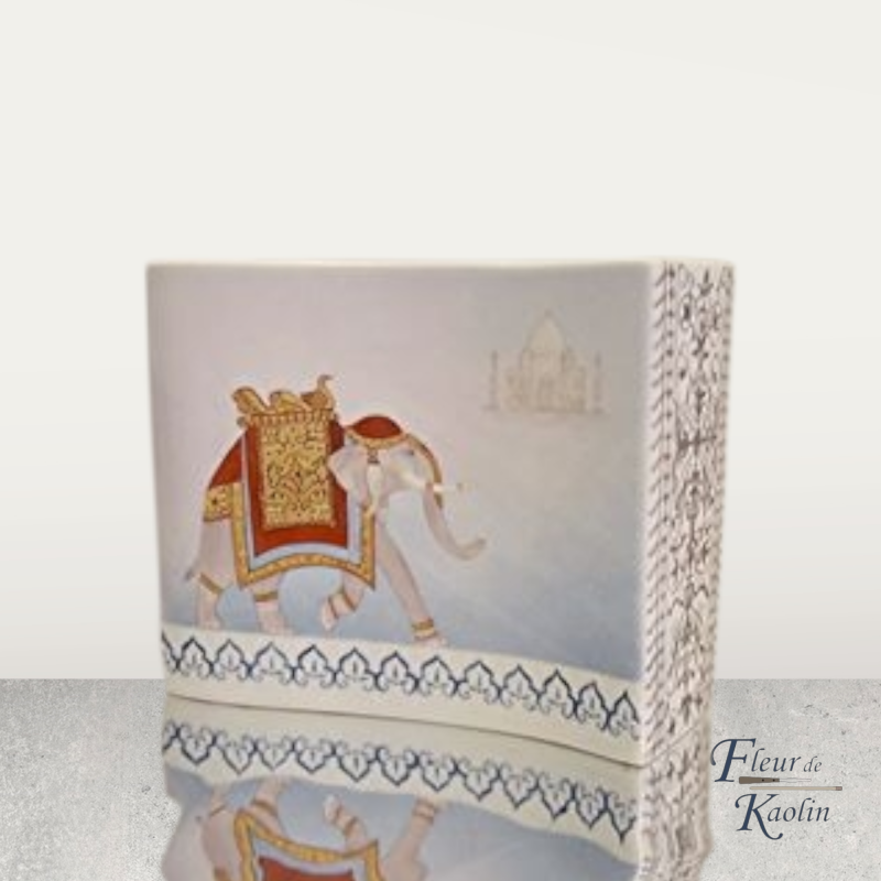 Vase en porcelaine Carpenet – Voyage en Inde : Éléphant au Taj Mahal